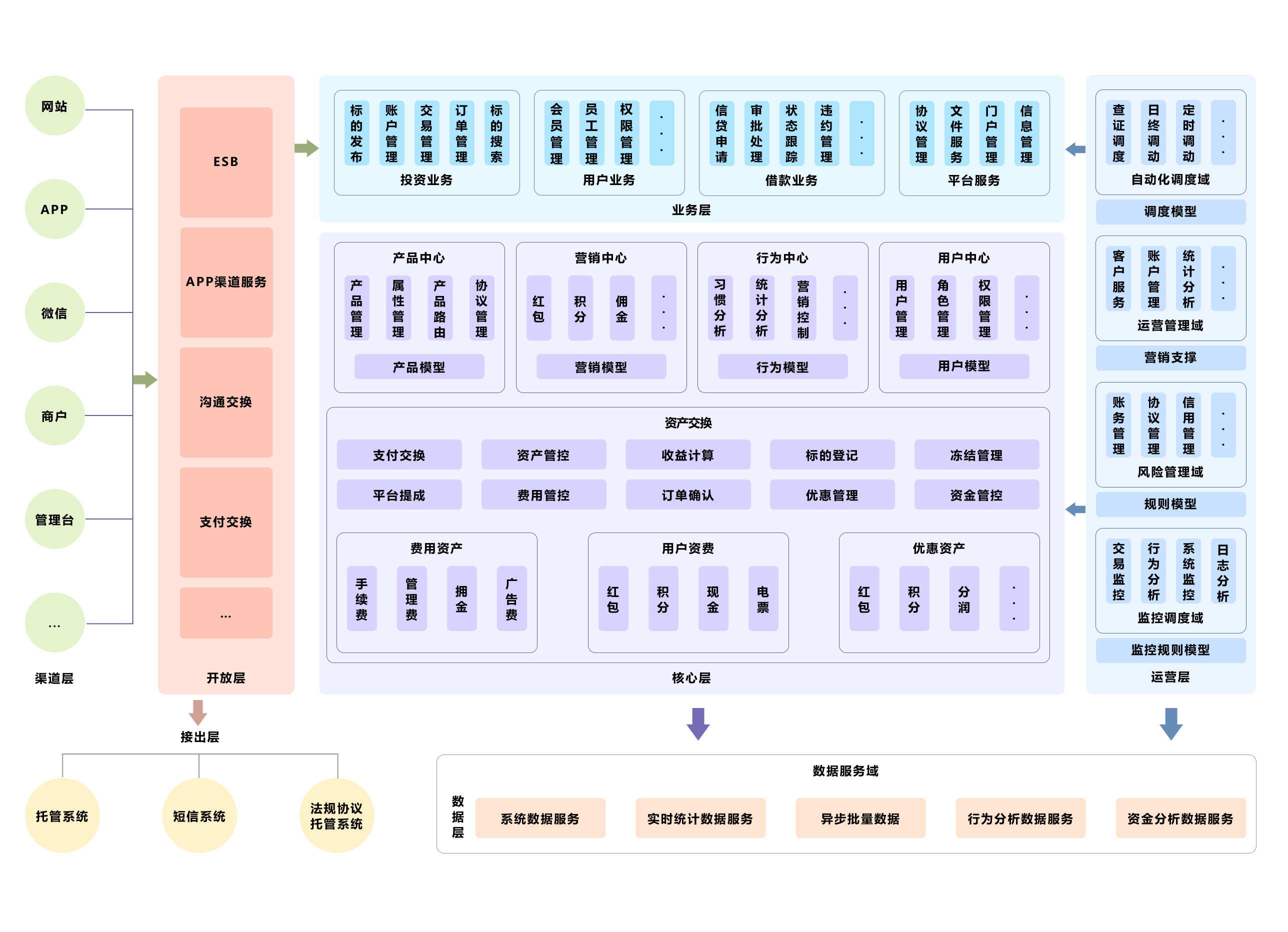 包括循环信用贷款、散标投资、活期投资、定期投资、整体转让、部分转让。