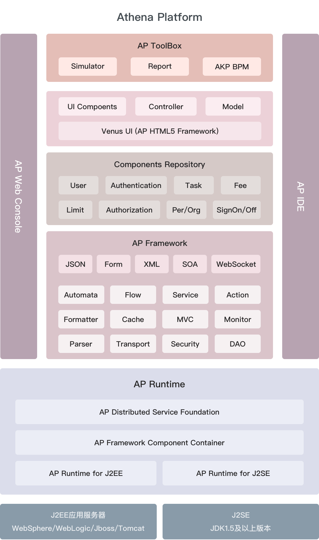 Athena应用开发平台采用开放性的设计思想,实现了一整套适用于金融软件开发的基础应用开发框架,同时提供了一系列的基础业务组件和技术组件,为金融软件的开发提供了完善的开发环境、运行容器、以及完善的监控及运行维护支持工具。该平台为通用平台,可适用于金融业各类典型应用场景的开发,并具备跨领域支持能力,特别适用于高安全、高并发、高突发性、高吞吐量、高效率的关键金融应用系统的开发和运行。